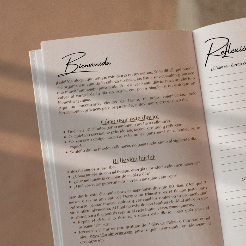 Este diario no busca que llenes tus días de tareas, sino que aprendas a priorizar lo que realmente importa.